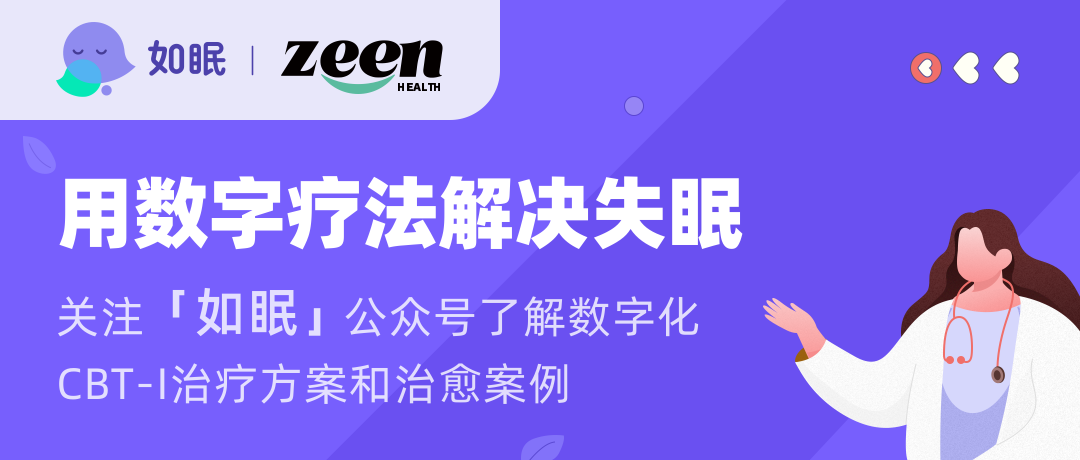 「如眠」是一款基于人工智能和失眠的认知行为疗法(CBT-I)研发,用于治疗慢性失眠的数字疗法产品。产品提供心理和行为疗法,经上千名中、重度慢性失眠患者使用,有效治愈或缓解失眠症状。「如眠」由中国领先的数字疗法公司「正岸健康」研发,团队来自大型互联网公司和医学资深专家。欲了解更多数字疗法治疗失眠的资讯,请关注「如眠」公众号。