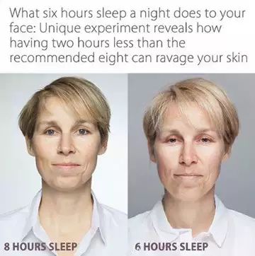 看看下面这个实验,充足睡眠6周后的皮肤状况对比,毛孔变小,皱纹减少47%,色素沉淀改善50%……