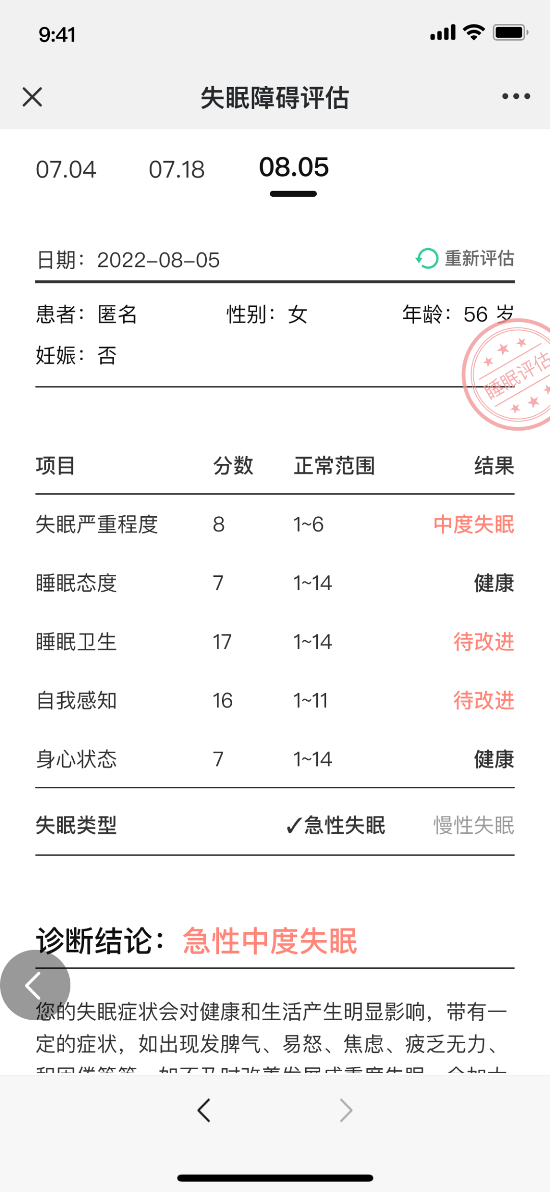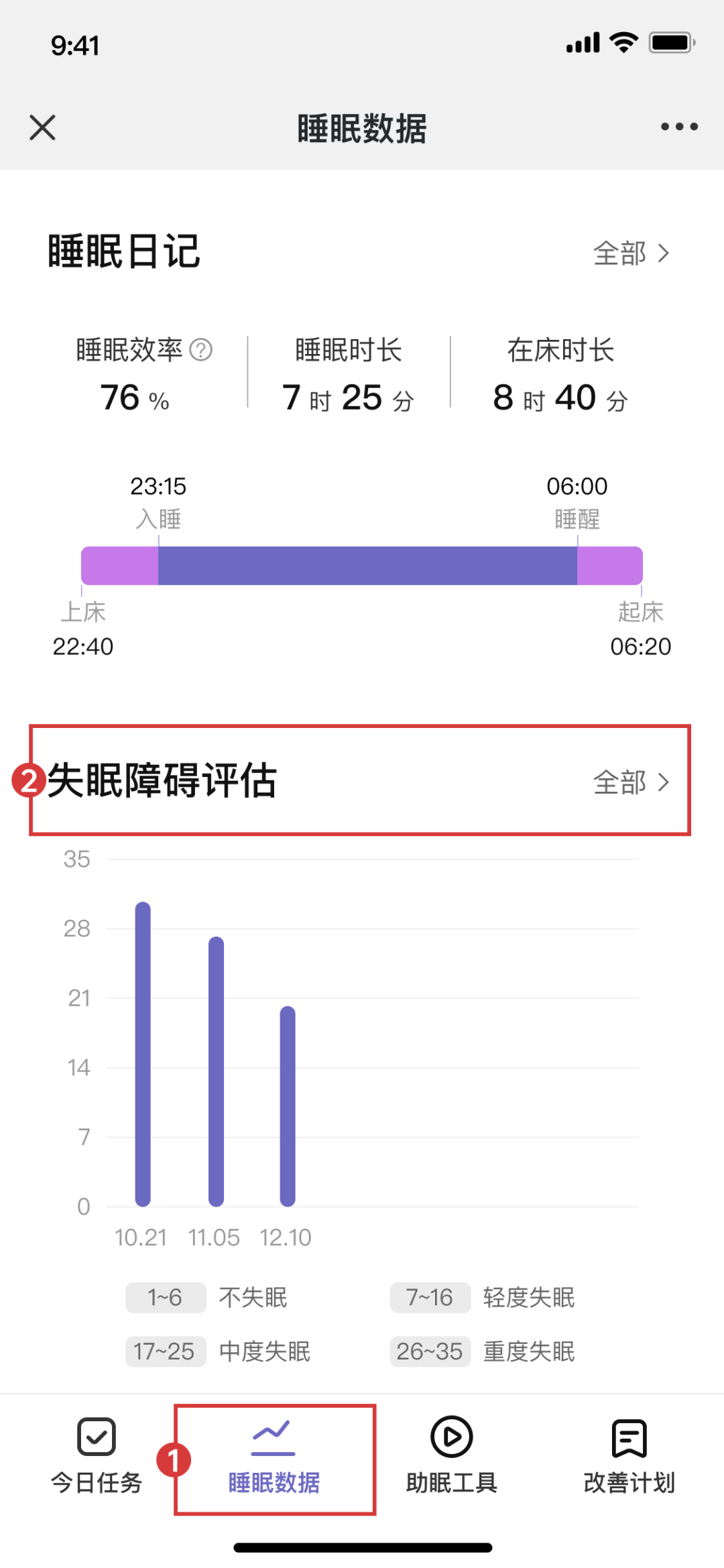 第一步:点击“睡眠数据”——“失眠障碍评估”